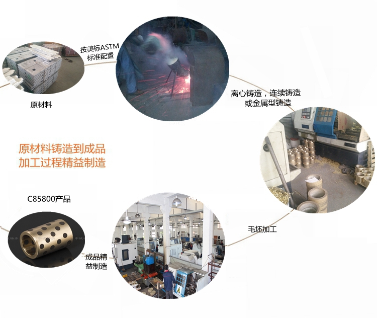 本產(chǎn)品實行ASTM標(biāo)準(zhǔn)………………………………………………… 根據(jù)客戶產(chǎn)品需求我們提供的鑄造方式有:離心鑄造,連續(xù)鑄造和金屬型鑄造。…………………………………………………………… 牌號C85800合金銅化學(xué)成分:Cu≥57 Sn1.5 Pb1.5 Zn31-41 Fe0.5 Al0.55 Mn0.25 Si0.25 Ni0.5 Sb0.05 P0.01 S0.05