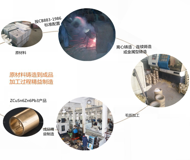 本產(chǎn)品實(shí)行CB883-1986標(biāo)準(zhǔn)………………………………………… 根據(jù)客戶(hù)產(chǎn)品需求我們提供的鑄造方式有:離心鑄造,連續(xù)鑄造和金屬型鑄造。…………………………………………………………… 牌號(hào)ZCuSn6Zn6Pb3合金銅化學(xué)成分:Cu余量 Sn5-7 Pb2-4 Zn5-7 Fe0.4 Al0.05 Si0.05 Sb0.3 P0.05